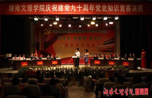 6月14日晚,学校庆祝中国共产党建党九十周年党史知识竞赛决赛在音乐厅举行。活动由我校创先争优活动领导小组主办,党委副书记石子球、副校长龚作奇、副校级督导郭国强、校长助理兼组织部长曾言出席活动。
