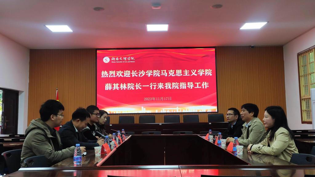 11月17日下午,长沙学院马克思主义学院薛其林院长一行来院考察交流,我院董树军、周忠华、朱凯玲、胡港云、罗尧在红楼会议室参加了座谈会,会议由朱凯玲主持。