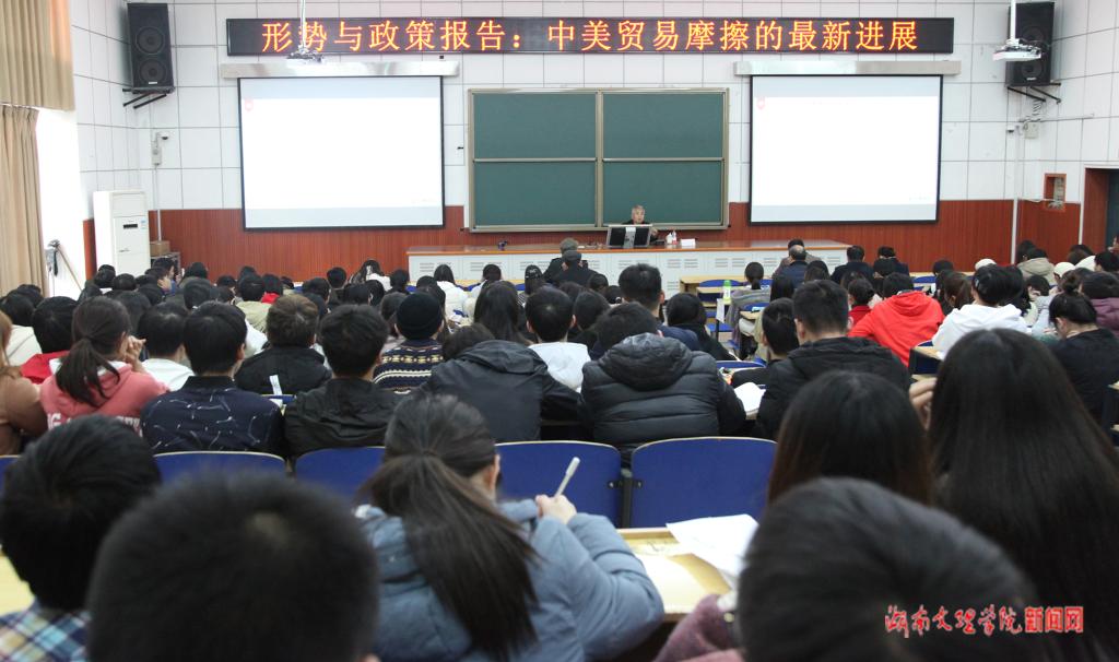本网讯(记者 王倩雯 摄影 熊思艺)11月22日下午,党委书记谷正气教授在T3教学楼D201教室作了一场题为《关于中美贸易摩擦最新进展》的形式与政策报告。法学院近400名师生现场聆听报告。