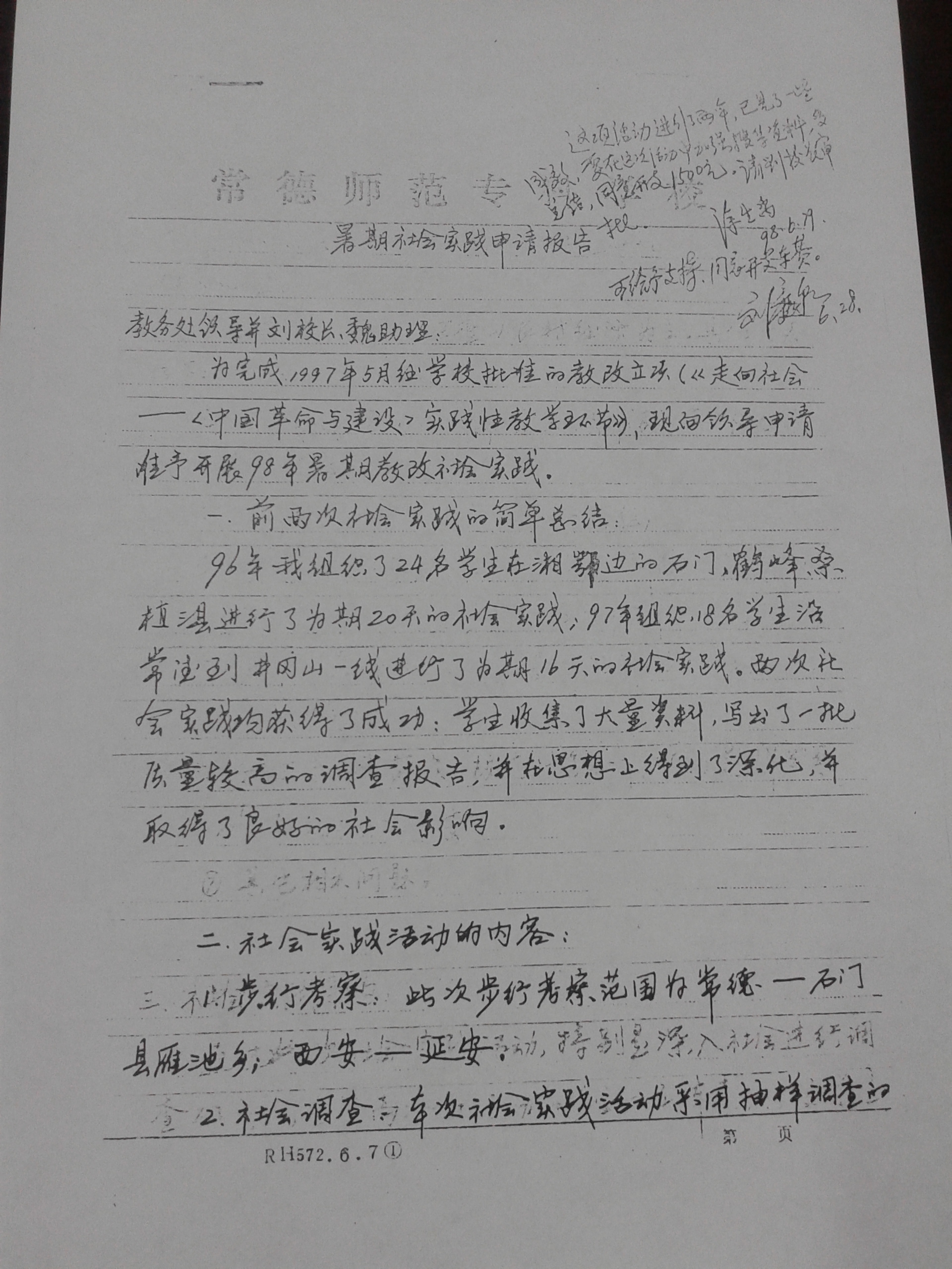 1998年暑假社会实践申请报告