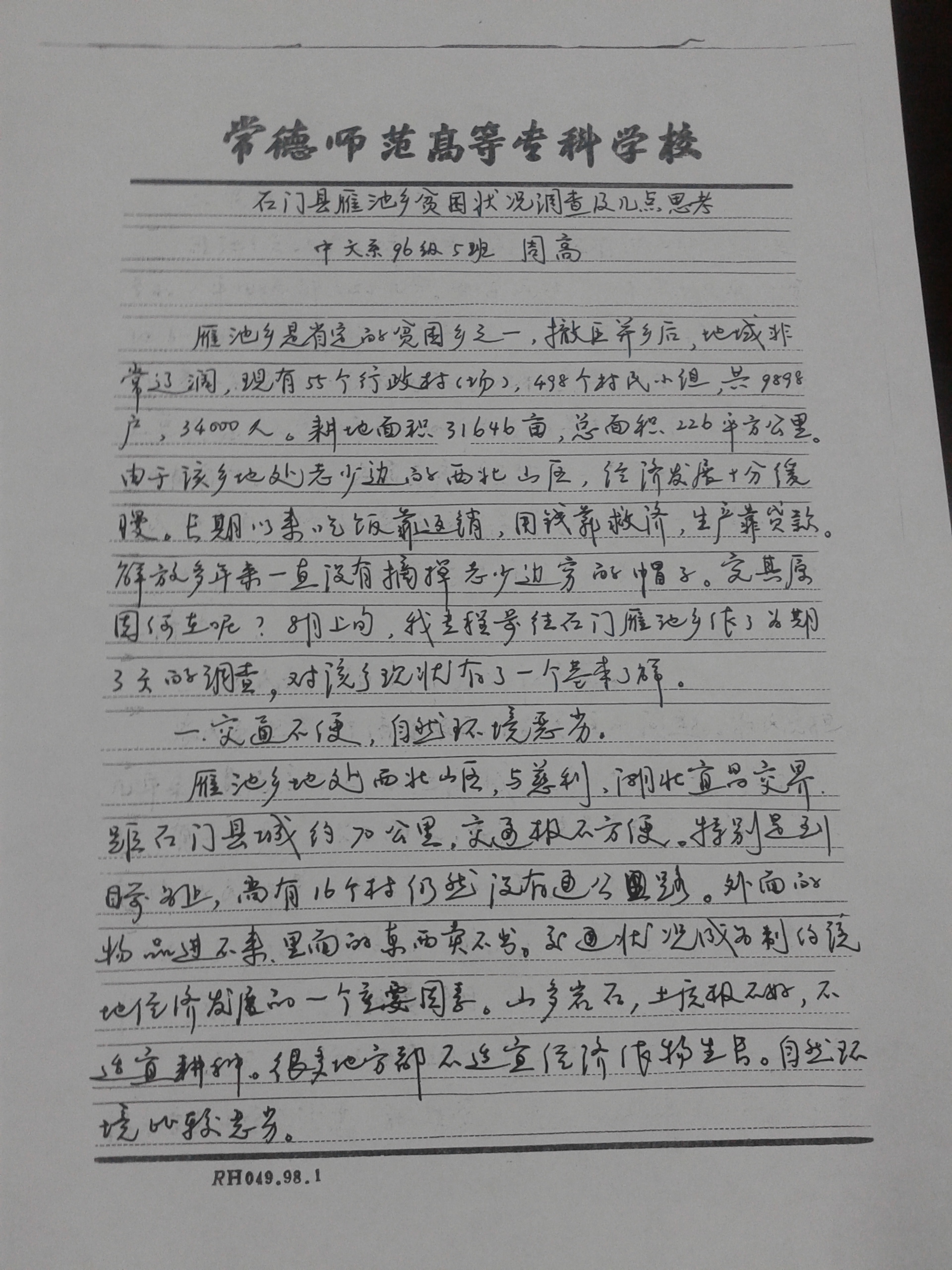 石门县雁池乡贫困状况调查及几点思考