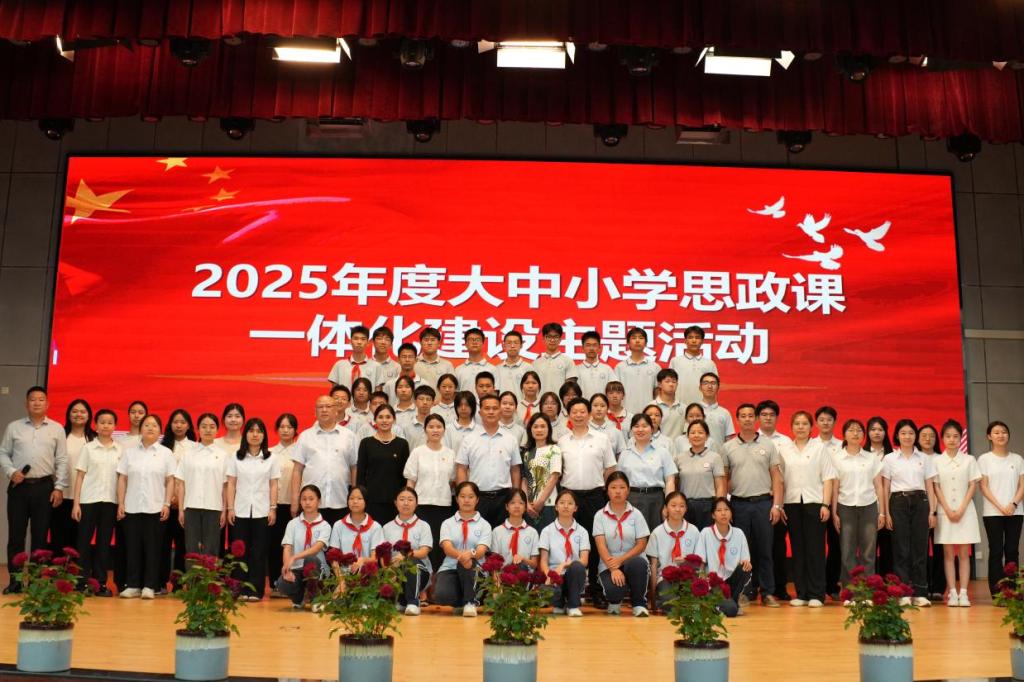 进入“传承·党员微思政”篇章,马克思主义学院大学生党员韩赫以《燃理想之光 扬奋斗之帆 担青春之责》为题,为在场中学生带来一堂生动的微思政课。她结合自身成长经历,向中小学生讲述了一名共产党员的信仰坚守与责任担当,激励青少年在党的引领下接续奋斗。活动尾声,全体师生齐唱《光荣啊,中国共青团》,激昂的歌声将现场氛围推向高潮。