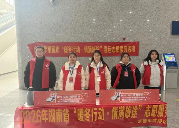 周杨灿在常德站参与春运“暖冬行动”志愿服务,负责秩序维护、出行咨询及便民服务,以认真负责的态度坚守岗位,用热情与细致温暖旅客归途,在实践中展现青年风采。