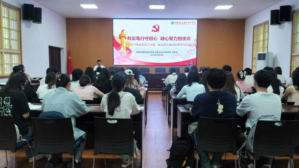 为了聚焦思政课名师工作室和教学团队建设中的实际问题,推动思政课建设不断向高质量发展,2025年4月11日,我院特邀全国高校思政课教学能手、湖南省“最美思政课教师”田文艳教授到校为思想政治教育专业学生开展专题讲授“思政课名师工作室和教学团队建设”。讲座由董树军教授主持。