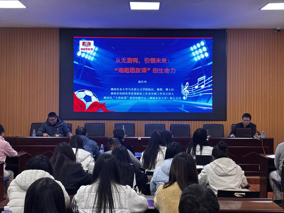 为深入推进思政课教学改革创新,提升思政课教师的教学设计与实践能力,3月11日,湖南农业大学马克思主义学院院长胡艺华教授应邀来校作专题讲座。本次讲座由董树军院长主持,百余名师生到场聆听。