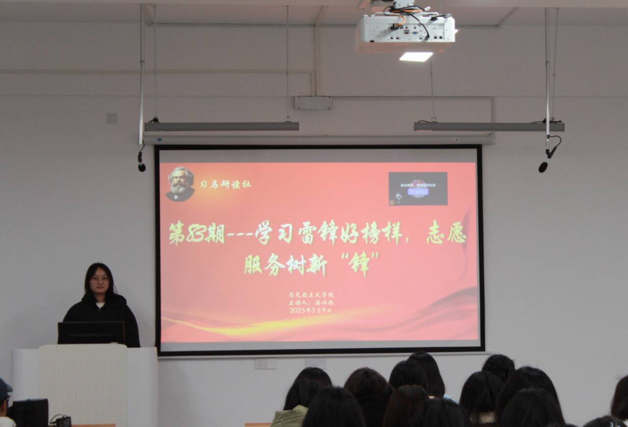 2025年3月5日是第62个“学雷锋纪念日”,也是第26个“中国青年志愿者服务日”。为深入贯彻落实习近平总书记关于青年工作的重要思想和关于学雷锋志愿服务的重要指示批示精神,深刻把握雷锋精神的时代内涵,培育和践行社会主义核心价值观。2025年3月9日晚20点,“习马研读社”于大学城校区精进楼235组织开展“习马研读社”第83期“学习雷锋好榜样,志愿服务树新‘锋’”团日活动。