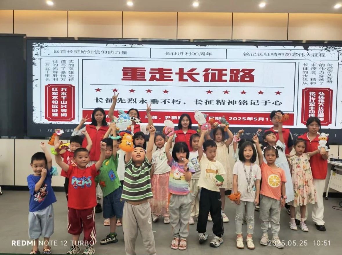 本网讯(记者 杨凯莉)为弘扬红色文化、赓续长征精神,湖南文理学院马克思主义学院“习马研读社”创新融合趣味互动与红色教育,于2025年5月17日、25日分别在河湫镇洪闸村村民委员会及中建公园府社区,成功举办两期“重走长征路”主题支教活动。本次活动以沉浸式体验为特色,通过讲述生动的革命故事,让孩子们在参与中感悟革命精神,在潜移默化中接受红色文化洗礼,感悟红色基因。