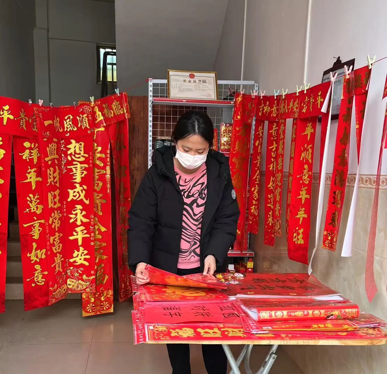 在邮政旁边的一个小隔间,我经营着一家小小的对联店。隔间里挂满了各式各样的对联,红底金字,熠熠生辉。我守着摊位,看着来来往往的人们挑选心仪的对联,心底盈满融融暖意。来买对联的,不仅有头发花白的老人,还有带着儿童的家长。每当客人拿起一副对联,细细品读,从他们满怀深情的眼眸中,我感知到了对联所蕴含的文化力量。