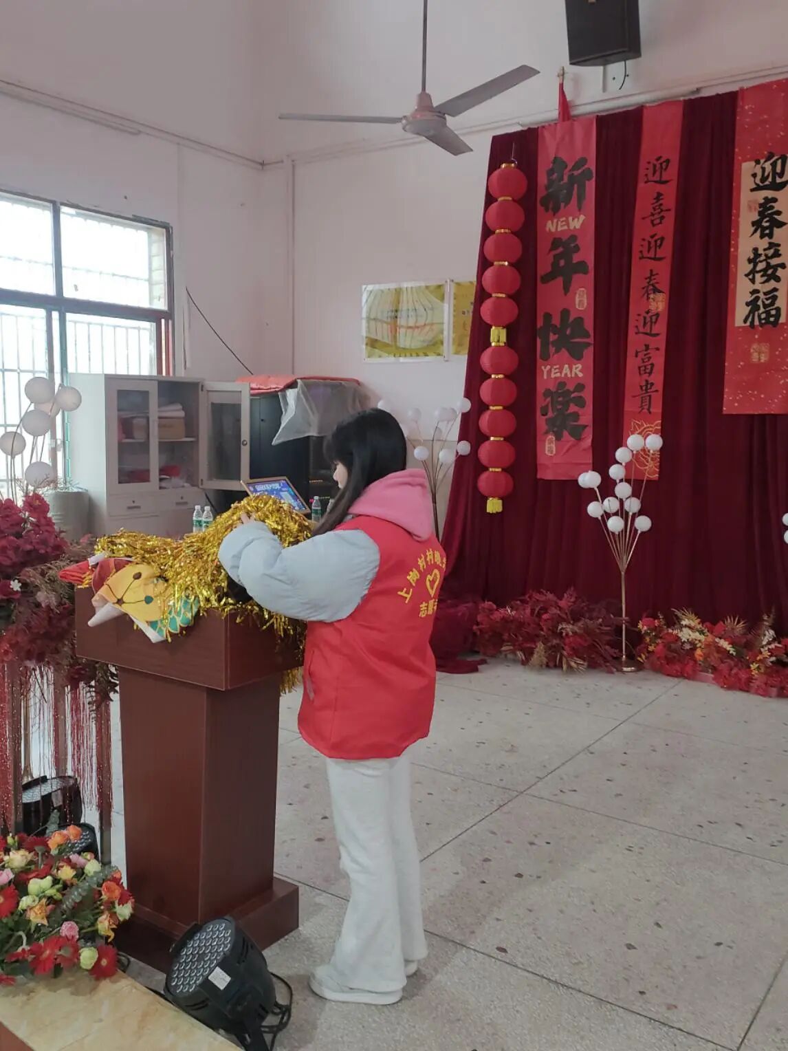 2025年1月25日,我志愿参与家乡春节联欢晚会的举办。临近春节,我们村书记组织举办了太坪村春节联欢晚会活动,我志愿报名参加了这个活动,在该活动中担任两个角色。