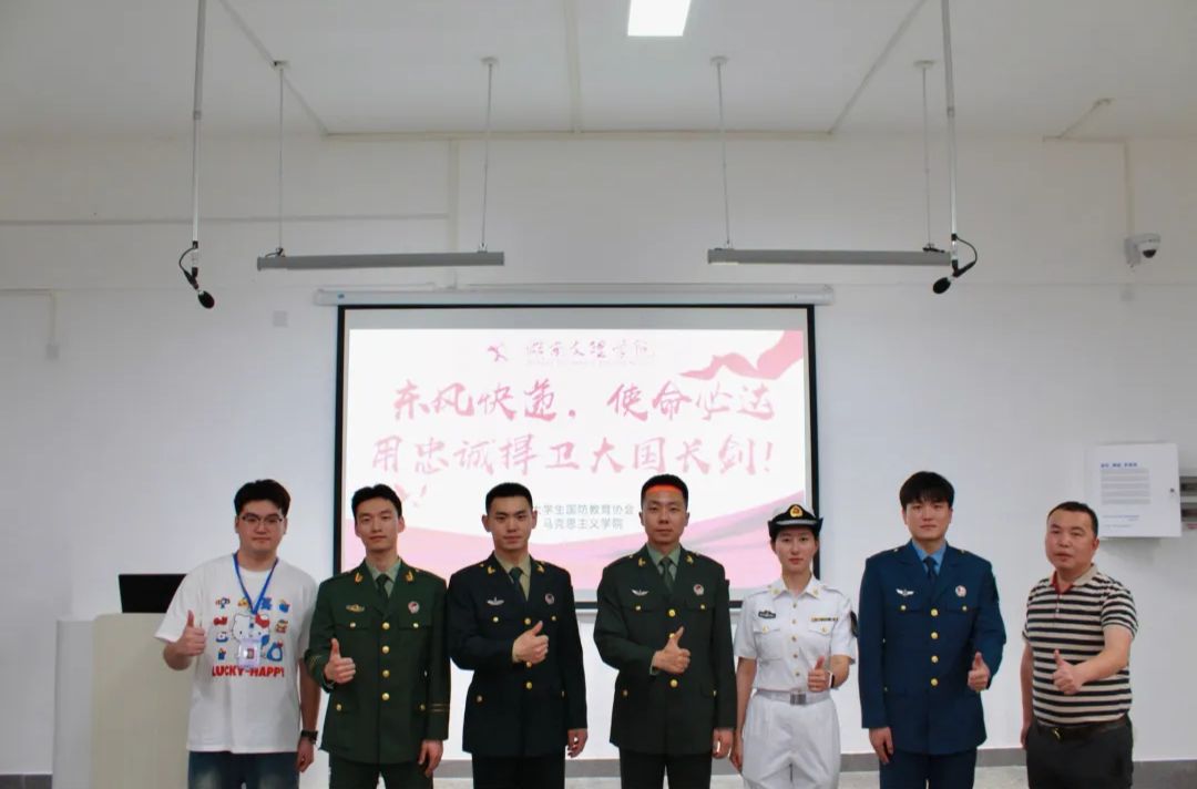 为积极响应国家号召,鼓励优秀青年报名参军,投身国防事业,马克思主义学院于2025年4月17日晚19:00在精进楼235教室召开2025年春季学期征兵宣讲会。湖南文理学院国防教育科副科长黄柯忠、大学生国防教育协会成员以及2024级全体学生参与本次会议。