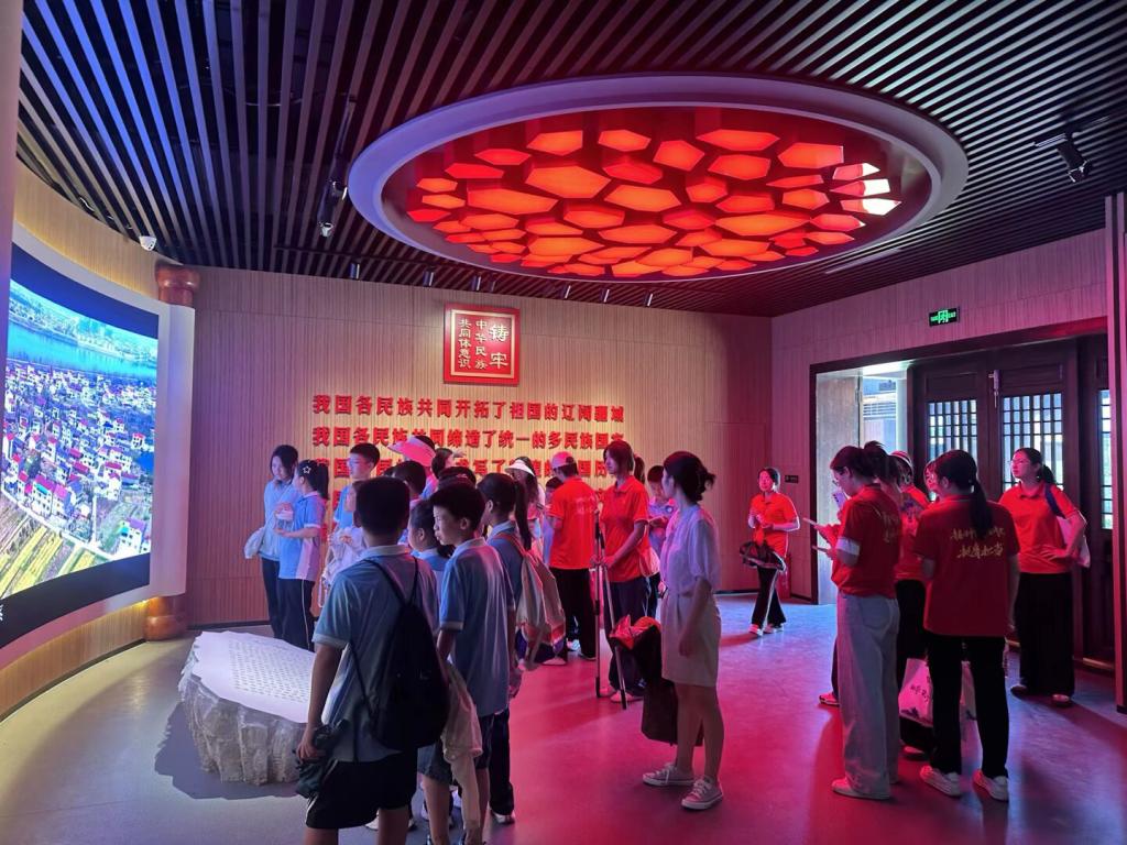 在展示馆内,实践团成员引导小学生们参观了桃源县根雕、铜雕等非遗展品,讲述了革命烈士翦去病、王悦贞的光辉事迹,并一同观看了记录各民族历史与文化的珍贵文物与影像资料。此次活动既是一堂生动的思政实践课,更是一次凝聚民族复兴精神力量的文化洗礼,引导青少年在共学共研中深化情感认同,在文化浸润中坚定铸牢中华民族共同体意识的信念。