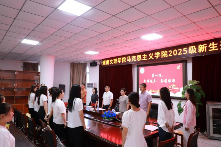 在庄严的奏唱国歌声中,马克思主义学院2025级新生开学典礼正式开始。