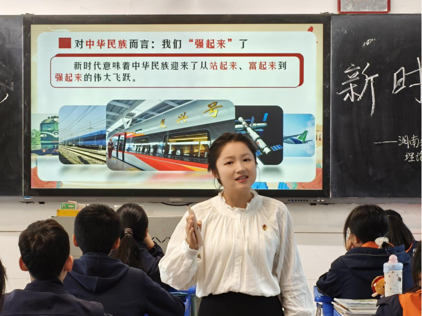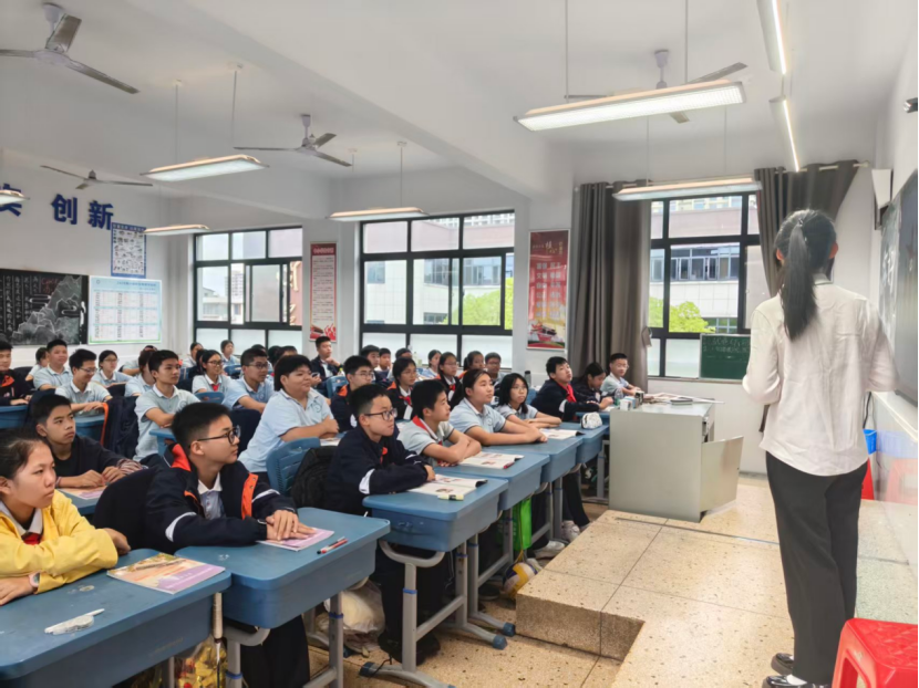 宣讲过程中,宣讲团成员创新教学形式,通过沉浸式课堂互动和直观化视频展示,将抽象的理论知识转化为贴近中学生生活实际的鲜活内容。他们结合青少年成长特点,用通俗的语言、生动的案例阐释新时代的内涵与意义,带领学生们深入理解“中国特色社会主义进入了新时代”这一我国发展新的历史方位,解读“新时代”的科学内涵,引导学生思考个人成长与国家发展的紧密联系。