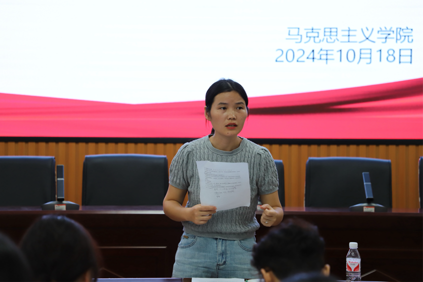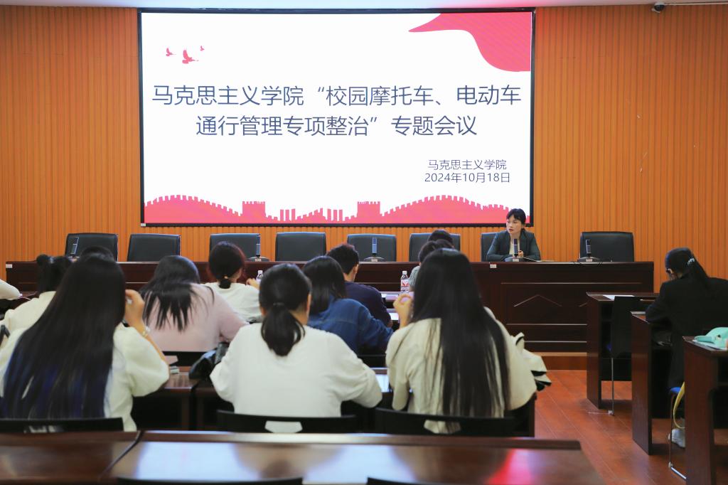 马克思主义学院于2024年10月18日在红楼二楼会议室召开“校园摩托车、电动车通行管理专项整治”专题会议。党委副书记胡港云、学工办主任石星、团总支书记王奕,第七届主席团成员以及部长副部长参与此次会议。本次会议由办公室副主任黄佳怡主持。
