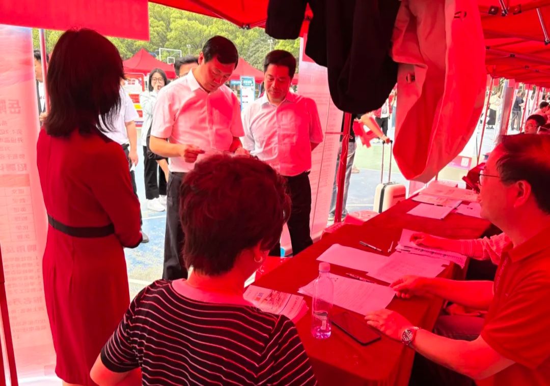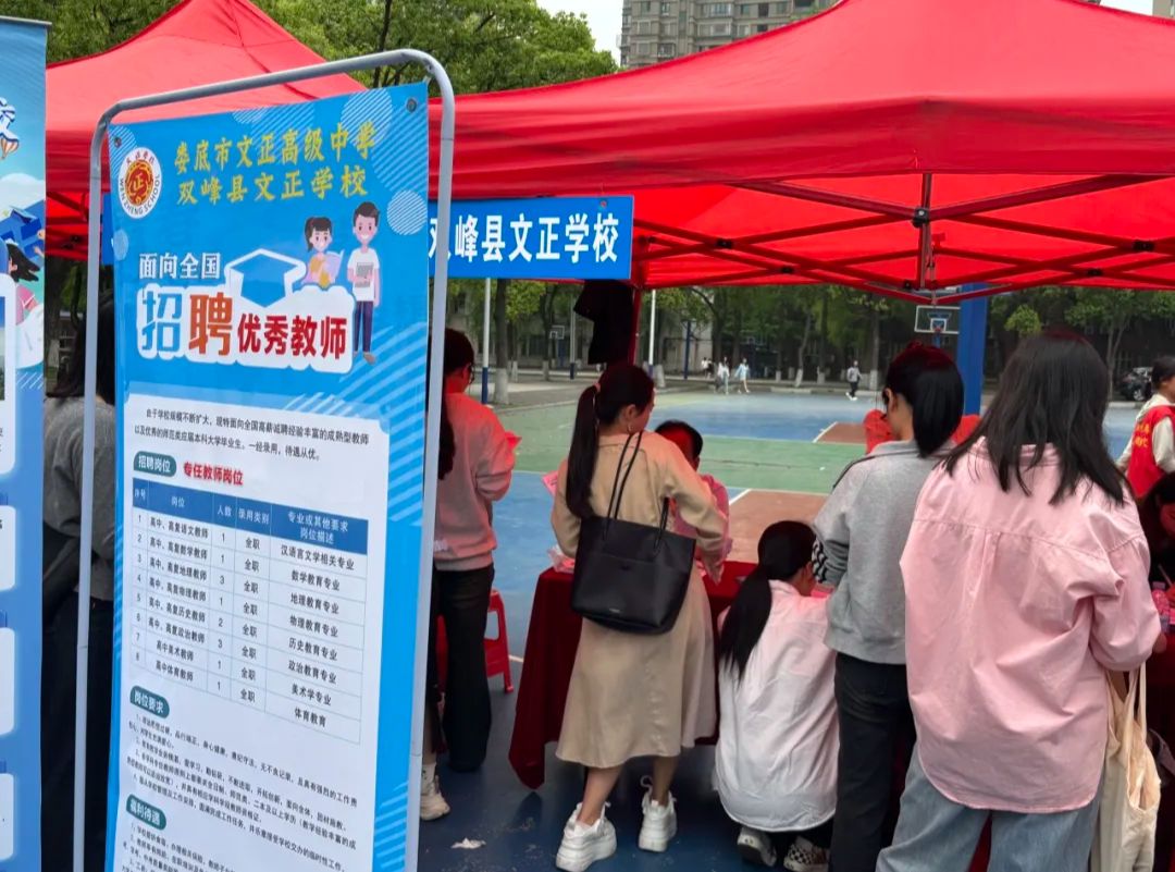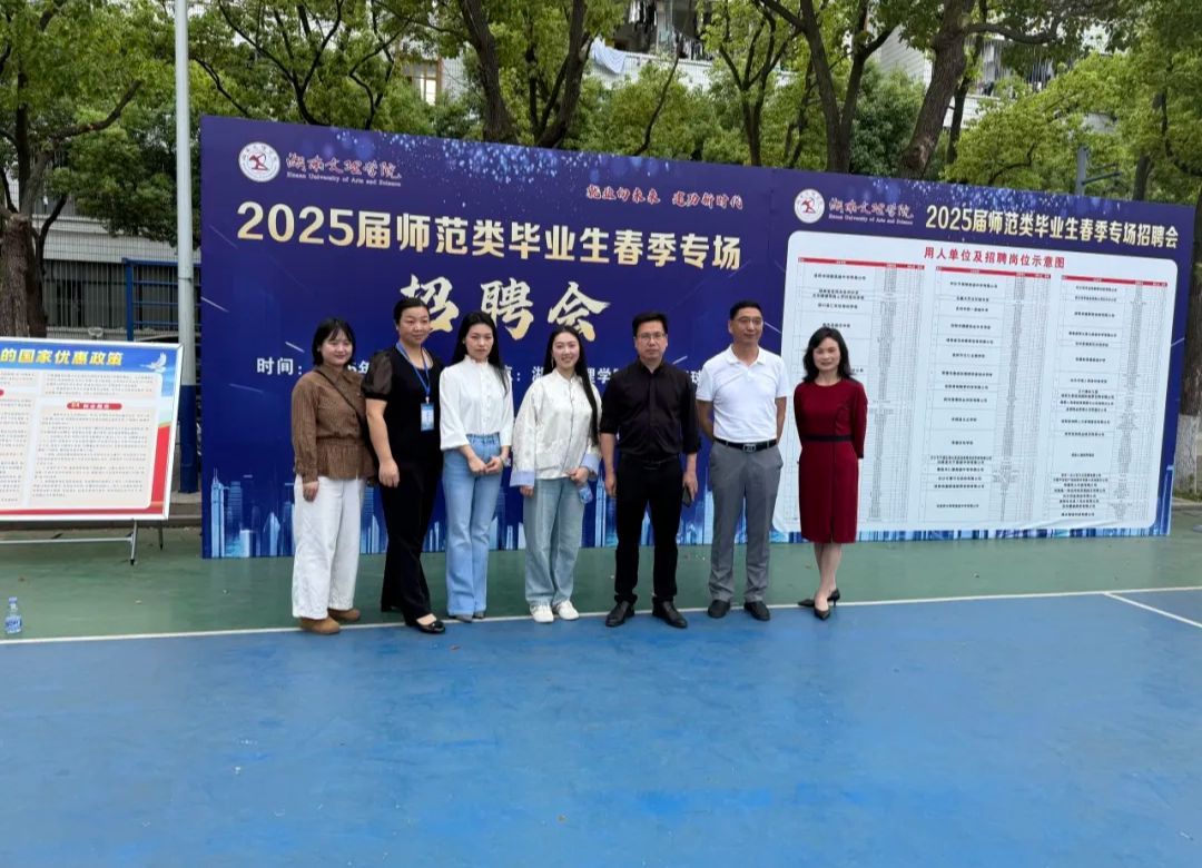2025年4月11日,我院联合数理学院、外国语学院与教育科学学院于南校区篮球场举办“湖南文理学院2025届师范类毕业生春季专场招聘会”。学校领导高度重视本场招聘会,刘宇文校长、戴军副校长亲自莅临并指导工作。马克思主义学院班子成员也来到招聘会现场进行指导。本次招聘会为师范类毕业生和用人单位搭建起高效的沟通桥梁,超60家中小型用人单位受邀参加本次招聘会,提供就业岗位1000余个,其中针对思想政治教育专业招聘的单位有18家,提供政治教师岗位79个。