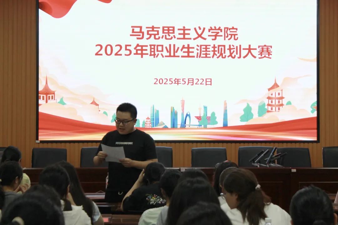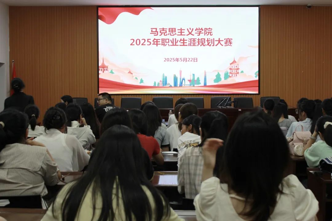为引导学生树立正确的职业发展观,增强职业生涯规划意识,提升就业竞争力,马克思主义学院2025年大学生职业生涯规划大赛于2025年5月22日16:30在红楼二楼会议室举行。本次比赛由就业服务部干事樊梦云主持,马克思主义学院学工办主任石星老师、团总支书记王奕老师、教务办李威老师共同担任评委。参与本次活动的人员共有10位参赛选手及2023、2024级60名学生观众。