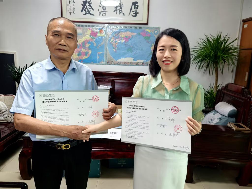 双方还围绕人才培养方案、学生实习实践、就业指导等方面进行深入交流与探讨,并达成多项共识。朱凯玲副院长代表学院与常德雷达教育咨询有限公司进行毕业生就业基地合作协议签约仪式,这标志着双方的合作迈出了坚实的一步。