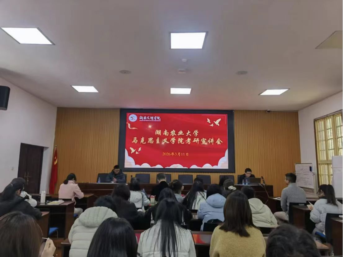 为引导毕业生明晰考研方向、把握报考政策,筑牢备考信心,3月11日,马克思主义学院于红楼二楼会议室召开考研宣讲会。本次会议由湖南农业大学马院院长胡艺华主讲,学院院长董树军主持,党委副书记胡港云、学工办主任石星、就业专干肖诗晓以及23级学生代表共同参会。